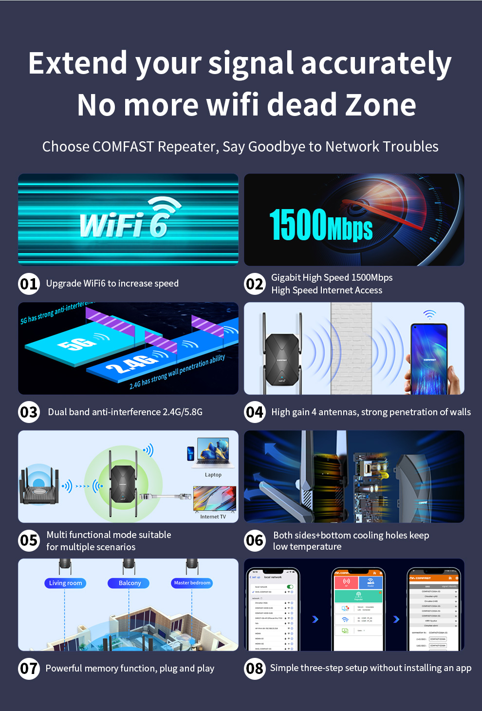 AX1500 WiFi6 Wireless Signal Extender